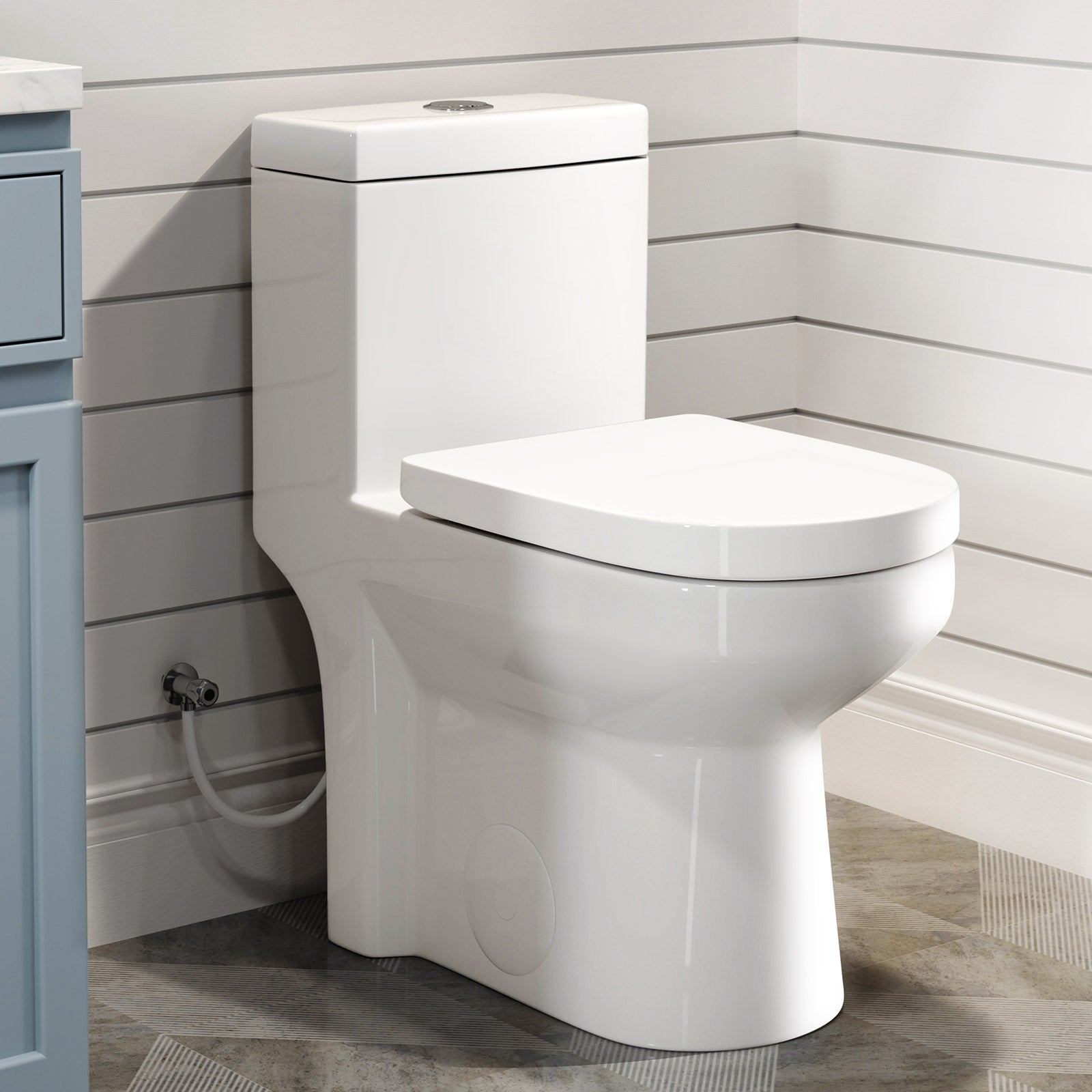 One-Piece 1.1/1.6 GPF Dual Flush Round Toilet in White Soft Close Seat Included