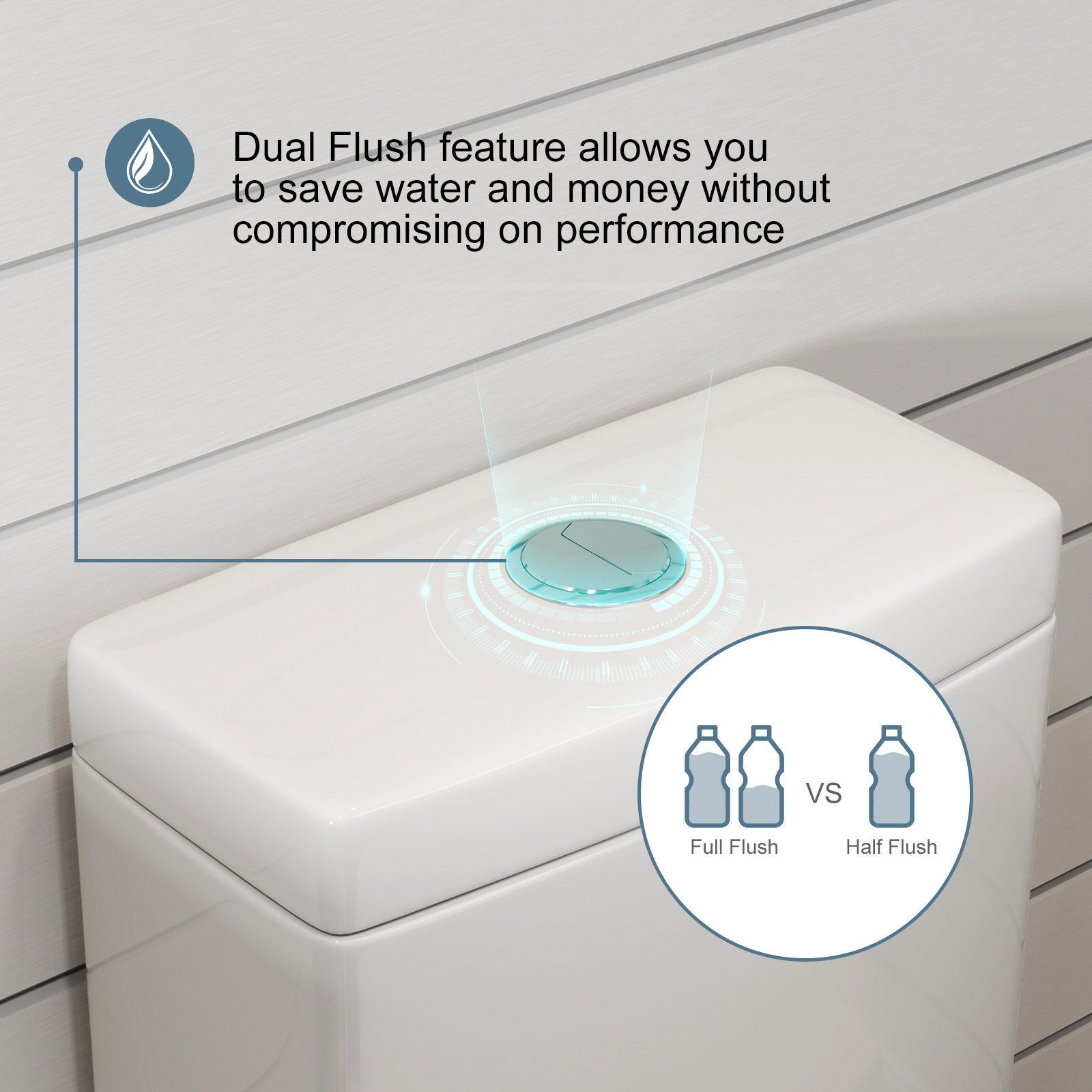 - Dual-flush system: 1.1 GPF or higher (1.6 GPF) with a powerful flush system