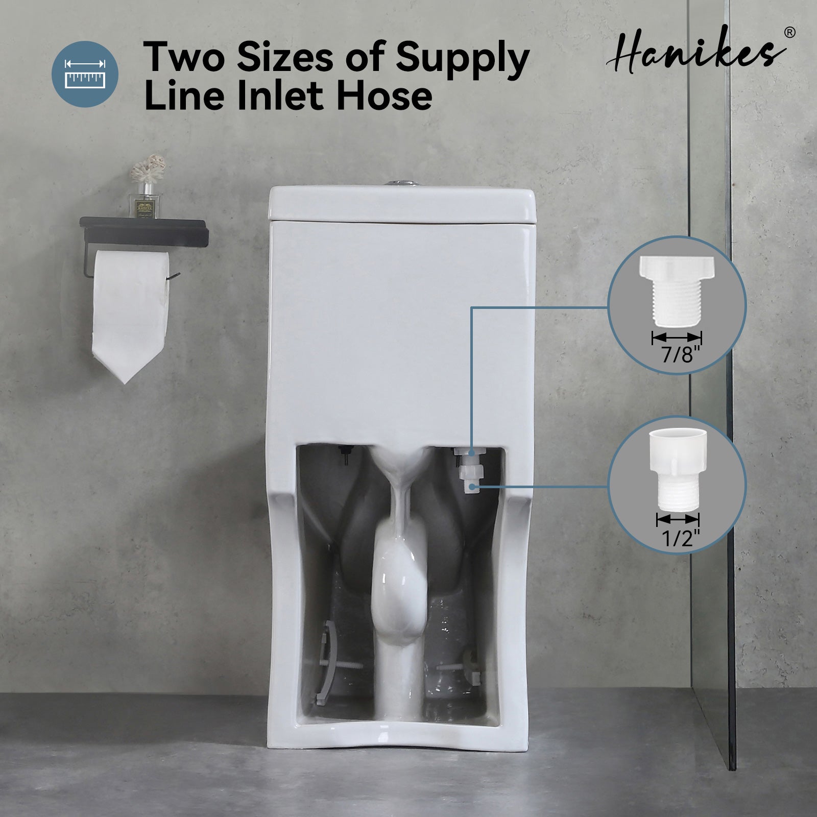 Give your bathroom an upgrade with this Hanikes One-Piece Toilet. The seat lid can be closed silently while conserving space with a compact round bowl. Featuring a concealed and smooth skirt design, it is not only visually appealing but also easy to clean. The powerful dual flush is extremely reliable and provides performance that never fails. The front bowl sits at a convenient height for ease of use and is the perfect design for any modern home.